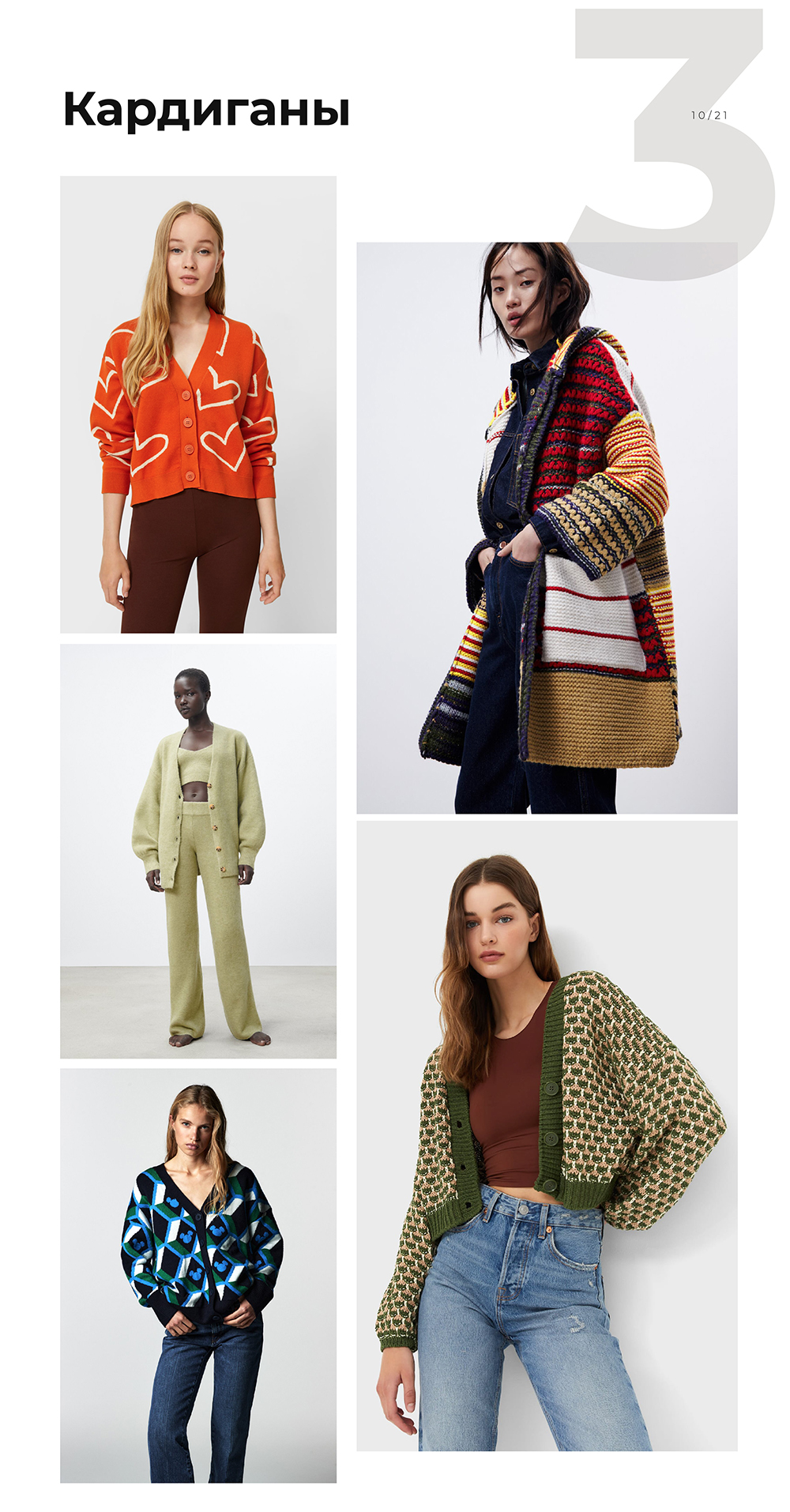 У вас будет самый модный кардиган в округе, если его свяжет ваша бабушка. В стиле пэчворк или яркий, с наивными рисунками, укороченный или удлиненный — как вам с ней нравится. Но и базовые, спокойные, однотонные варианты тоже в моде.