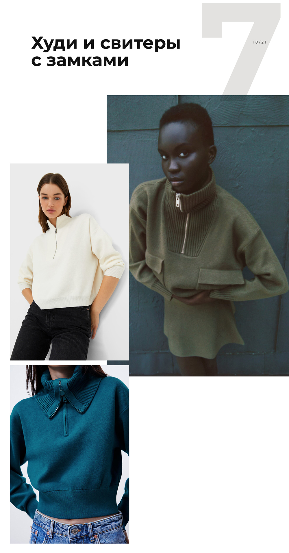 Худи и свитеры с замками, будто с папиного плеча, были модными прошлой зимой и все еще актуальны. Из нашей коллекции подойдут Сэнди и Линдси.
