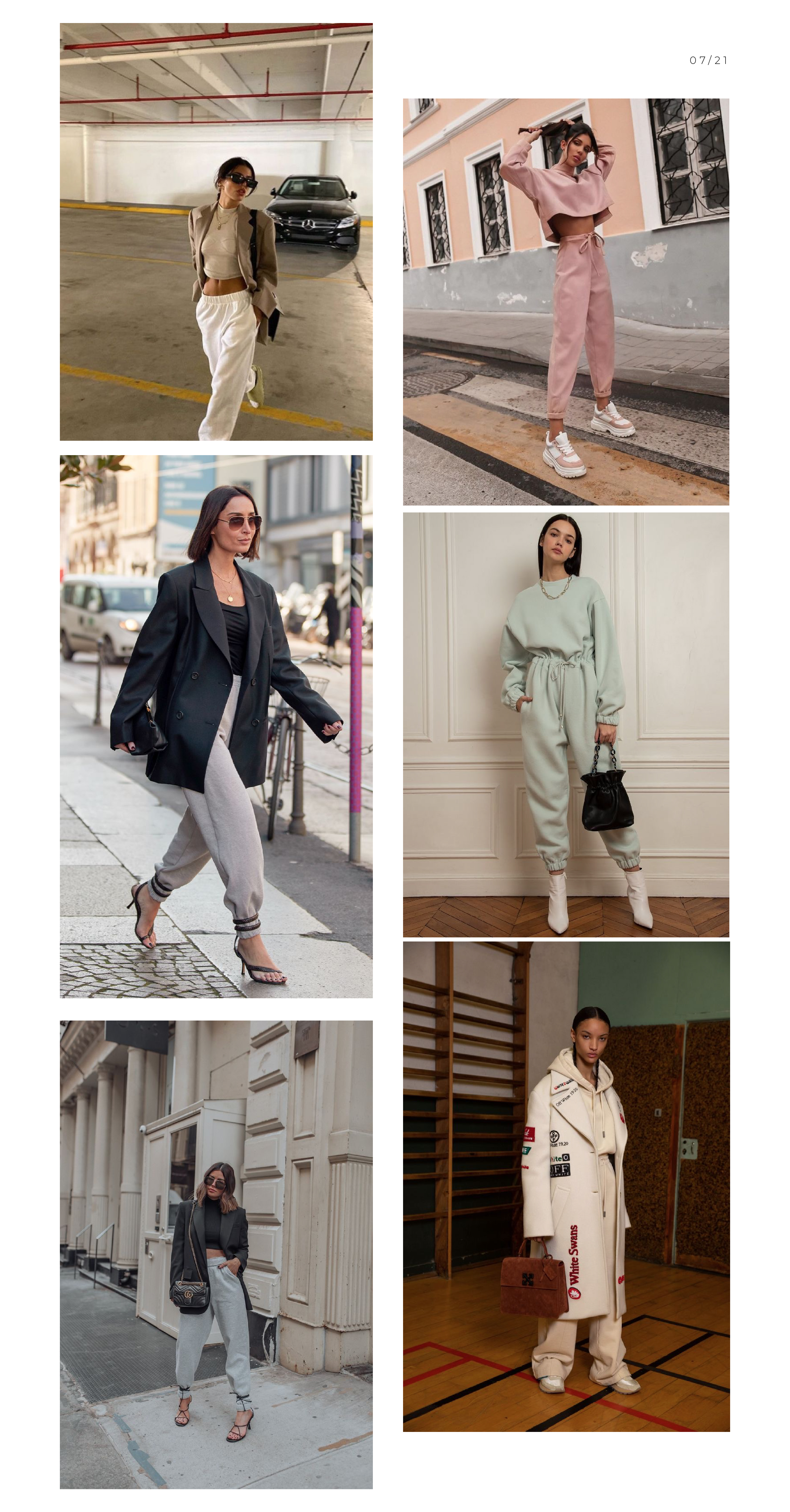 Каким должен быть современный трикотажный костюм и когда он выйдет из моды? Никогда, потому что это очень удобно. И выбирайте любой — с шортами или джоггерами, с широкими брюками или на резинке внизу. Но одно правило все же есть: