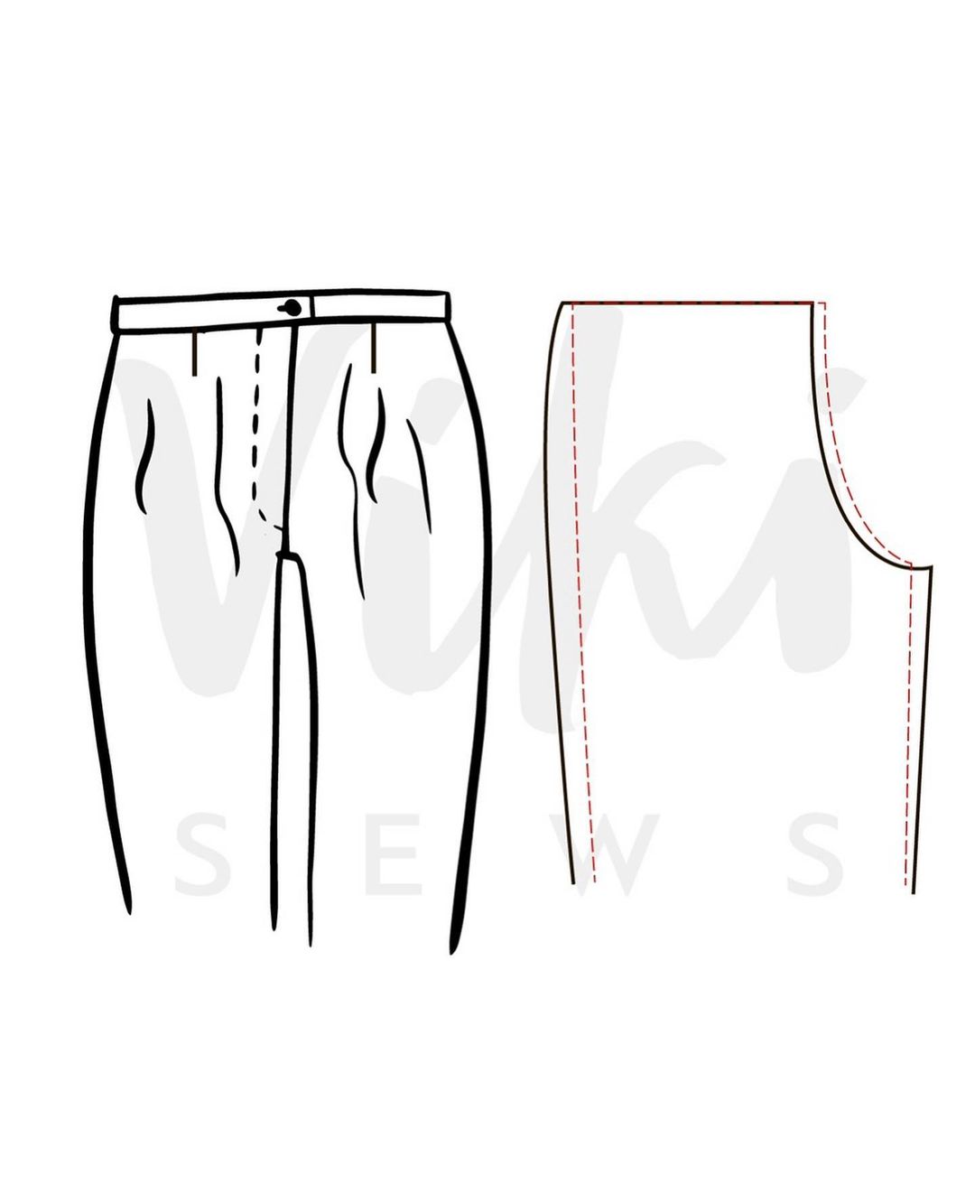 To solve these issues, you need to decrease the width of the front trouser pieces and adjust the crotch width.