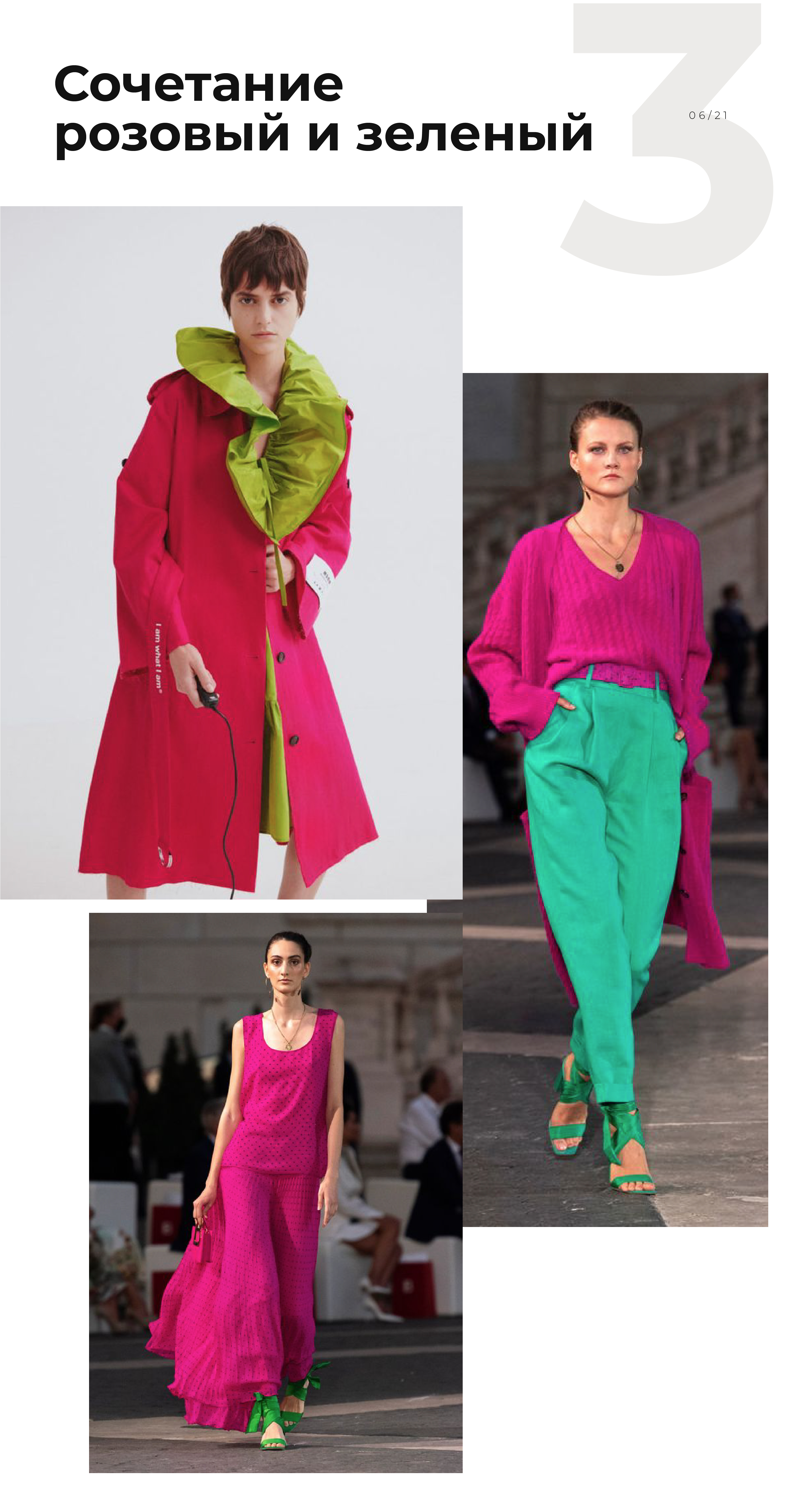 Модная двойная доза: собрать в одном комплекте розовый и зеленый. Наилучший вариант — фуксия и ярко-зеленый.