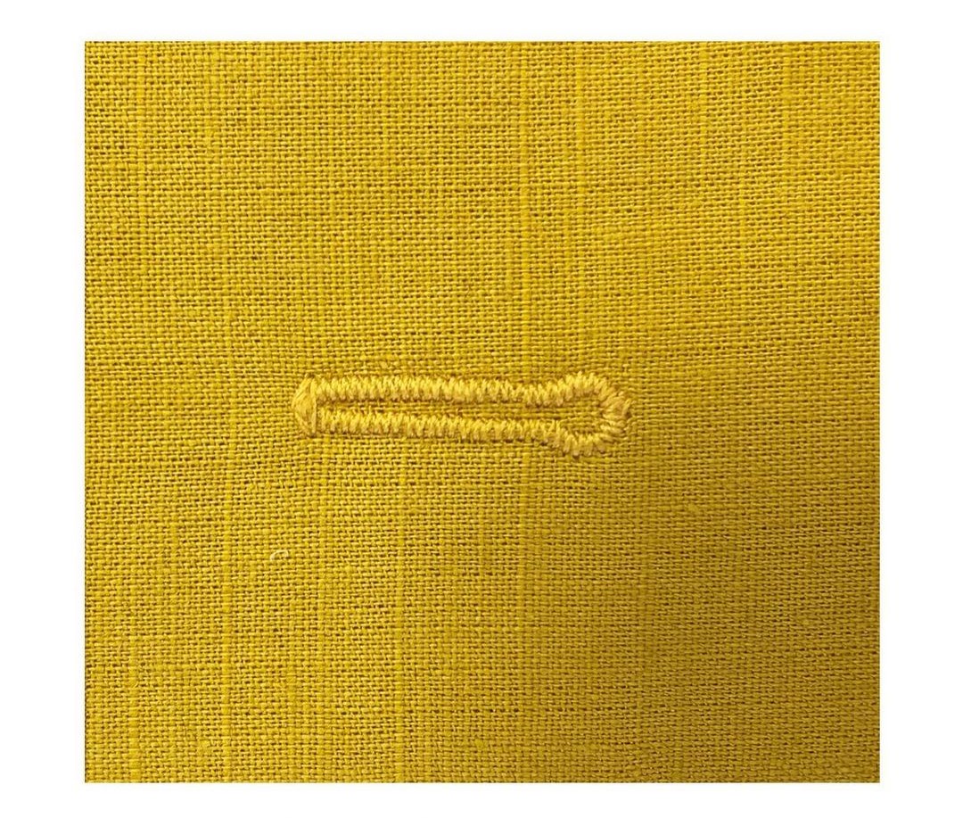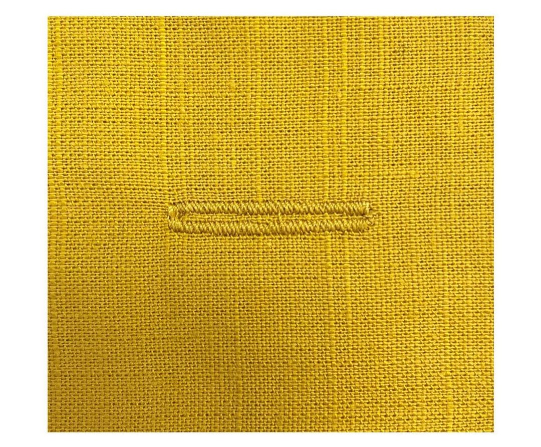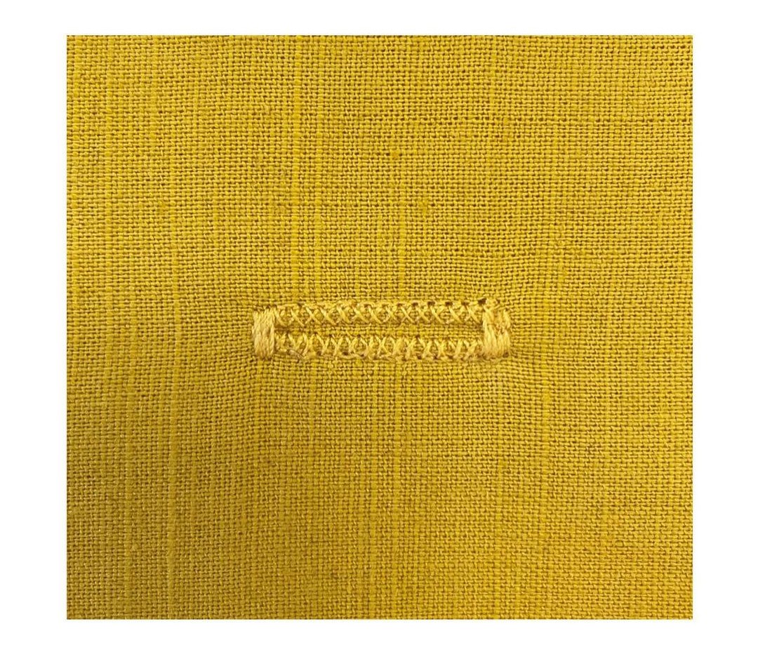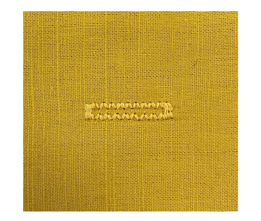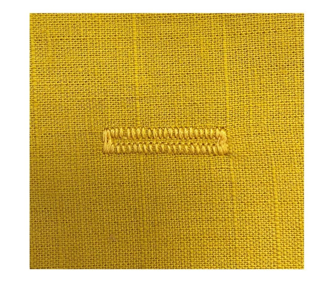 The hand-sewn-look buttonhole is a variation made by the sewing machine. As the name implies, it resembles hand-sewn ladder stitches. This type of buttonhole is perfect for lightweight fabrics. Apply fusible web or organza to the wrong side of the fabric to achieve a clean and nice-looking buttonhole. After stitching the buttonhole, carefully trim down the interfacing material.