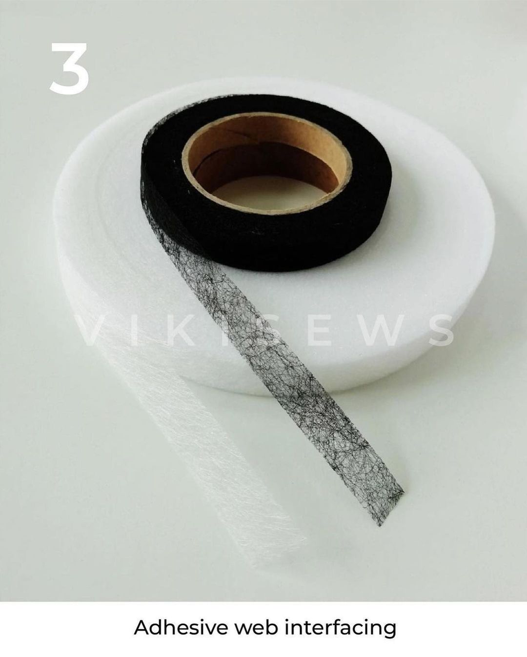Adhesive web interfacing – a non-woven, adhesive material in the form of a canvas or strips of different widths (photo 3). It melts when heated and sticks to the layer of fabric. It’s used for:
