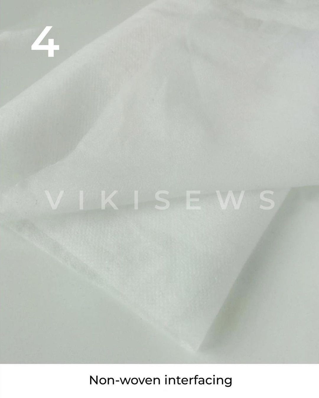 Non-woven interfacing – a non-woven adhesive material for strengthening the сut pieces, which should not be used because it’s flimsy, strongly warps, and quickly wears out.