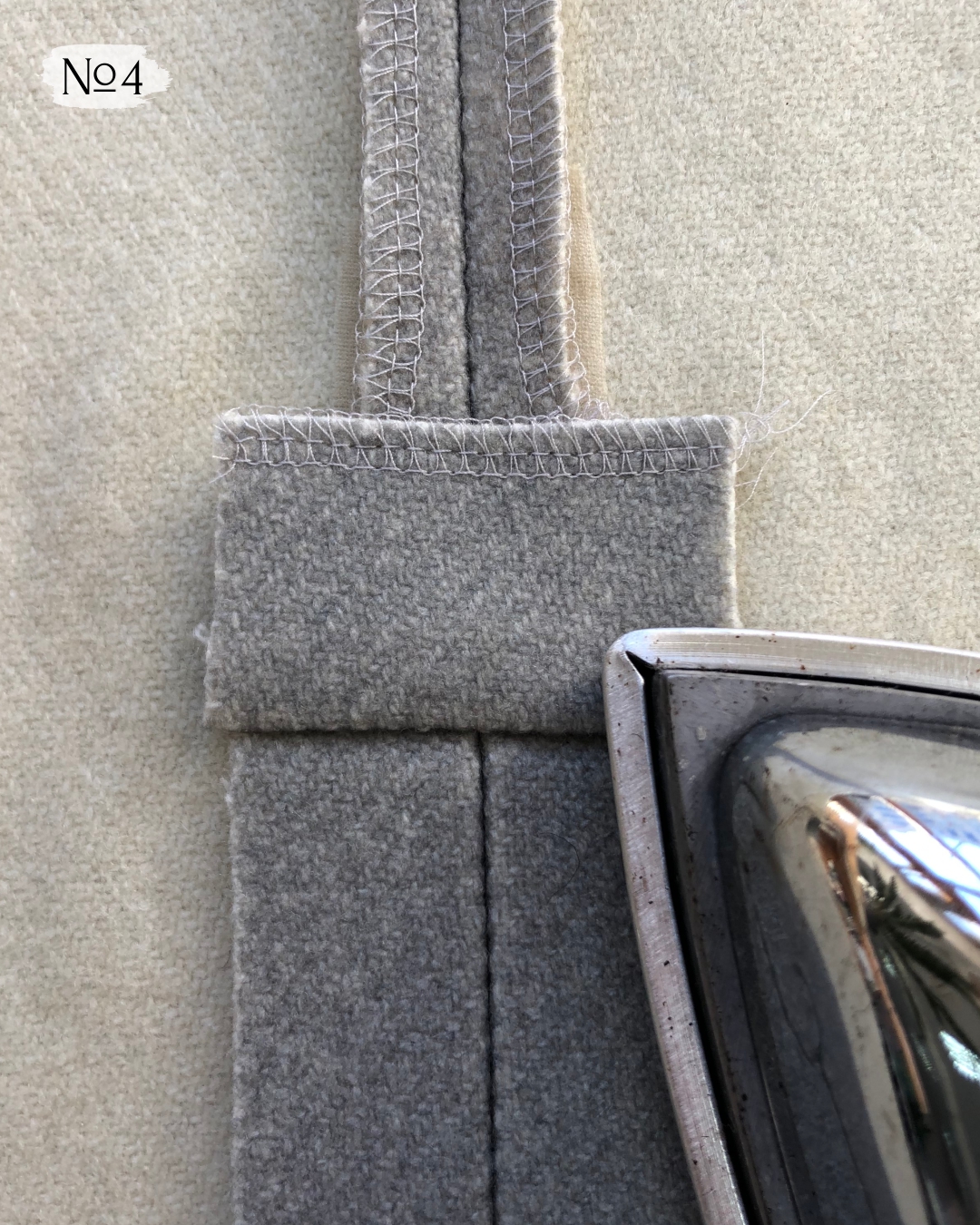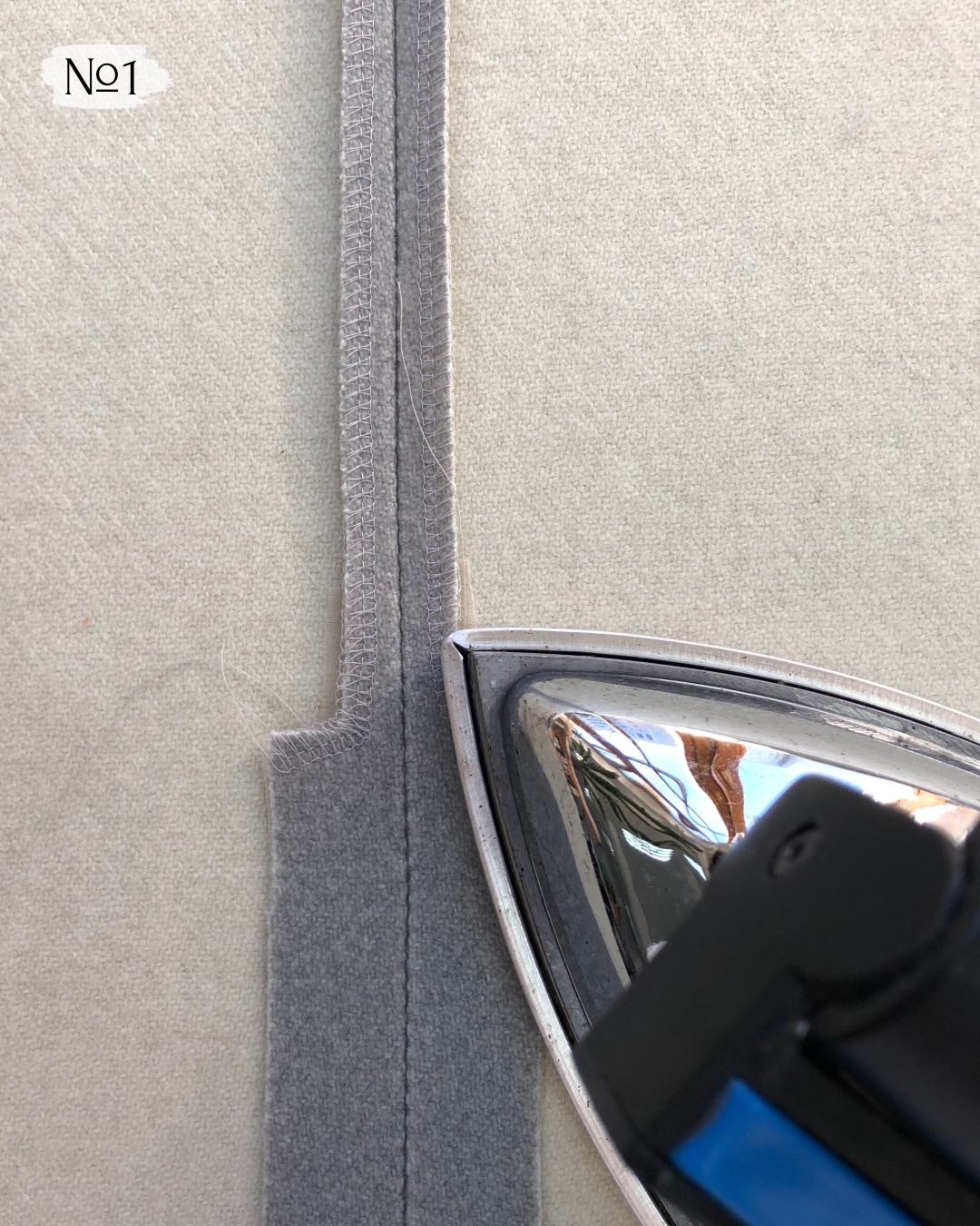 4. Шов приутюжьте и заутюжьте усилитель разреза по направлению вверх.