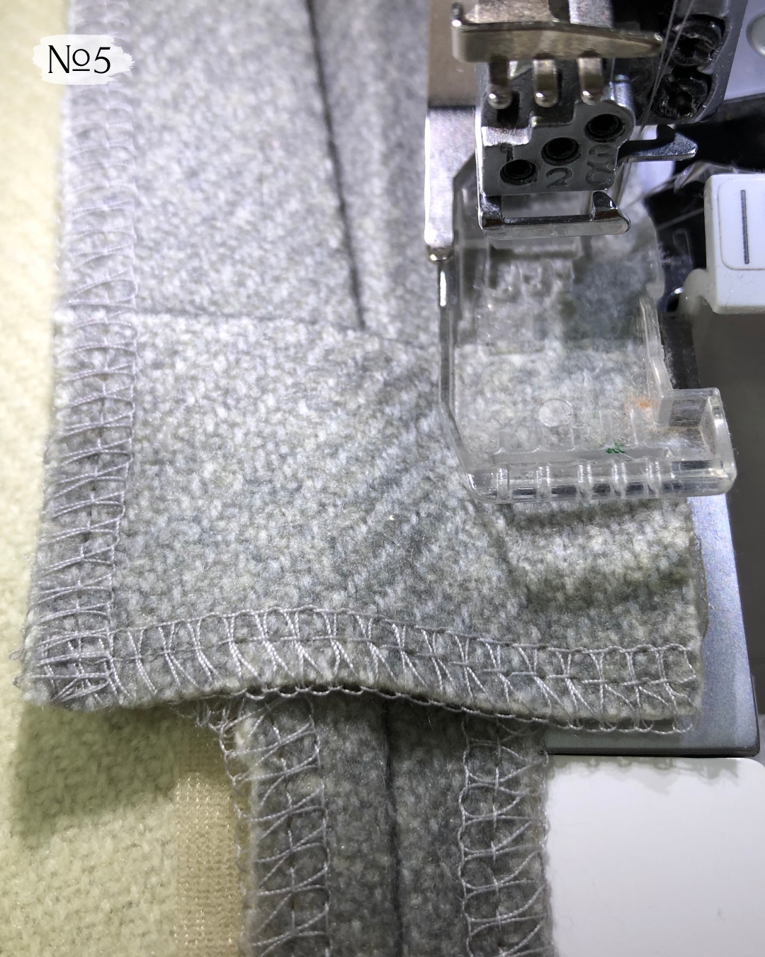 5. Обработайте на оверлоке срезы припусков разреза вместе с усилителем. Строчку прокладывайте по лицевой стороне. Концы нитей спрячьте в строчку при помощи крючка или иглы с большим ушком.