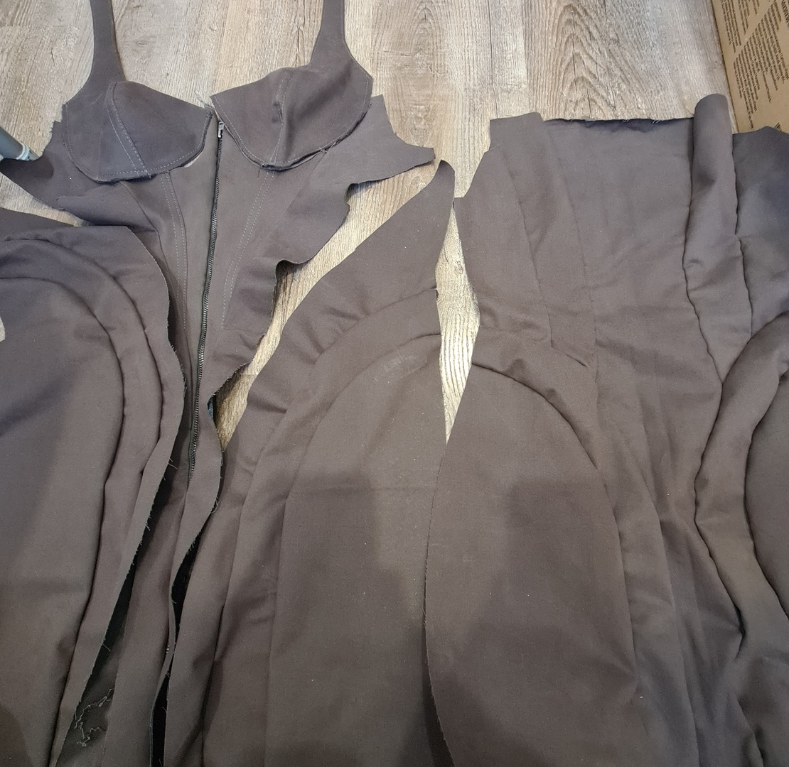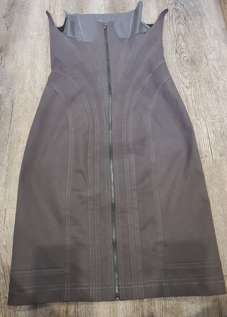 Не дошила, потому, что ошиблась в замерах, да и сама чуть прибавила в обхватах😅 Но я в восторге от этой модели (но не от количесва отделочных строчек). Еще моя ошибка а том, что это 4е изделие которое я сшила, а платье совсем не просто. Шила его из 2х видов ненужных брюк, были сложности с размещение выкройки на них, но чюдом все уместилось. Мечтаю когда-нибудь его перешить)