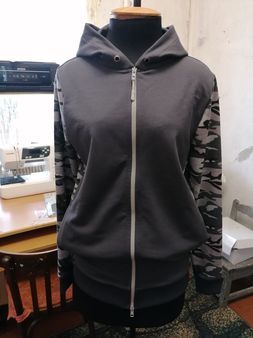 Сшила худи для мужа- и он, и я довольны. Только я высчитала размер неправильно, срезала припуски, и село хорошо! Особенно мне понравился капюшон! Он не в обтяжку, а глубокий и удобный!