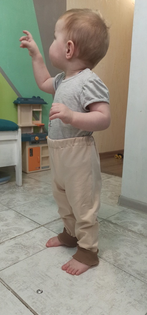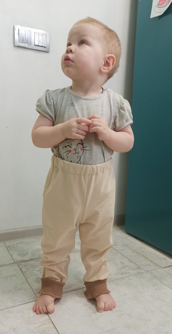 Сшила сыну штаны. Сын носит 92, взяла самую маленькую предлагаемую выкройку 98 размера. Конечно, на выраст. На фото манжеты снизу подвернуты. В целом, выкройка хорошая, всё понятно. Шить быстро, максимум 2 часа, если не отвлекаться.